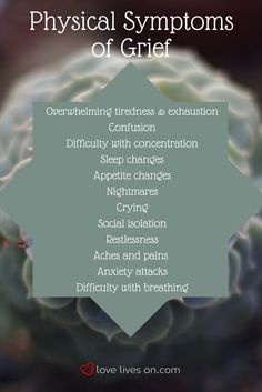 “Physical Symptoms of Grief. Fatigue: You feel exhausted all the time. You feel run down. You are always ready for a nap”.