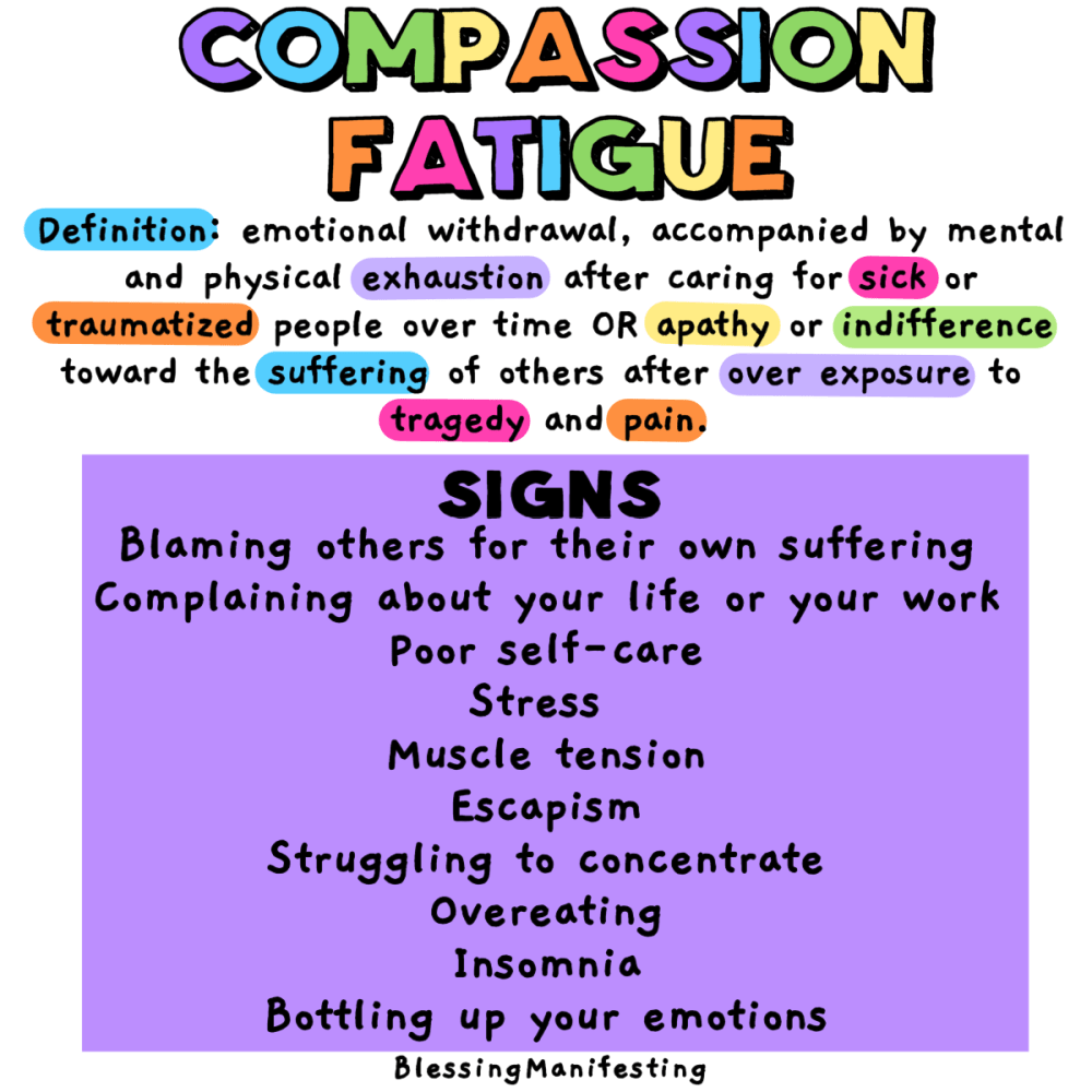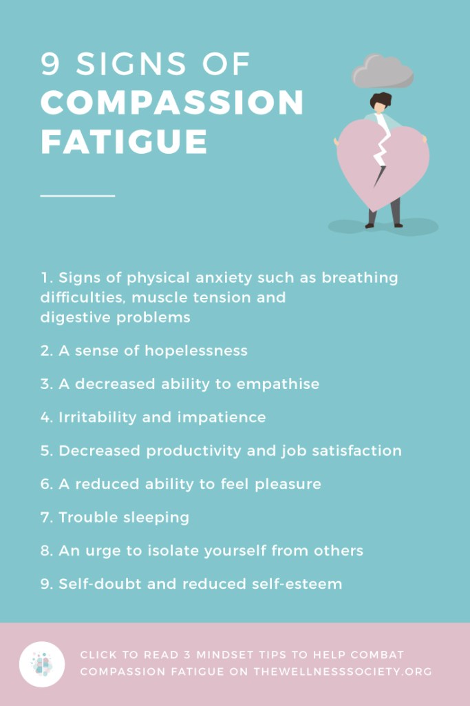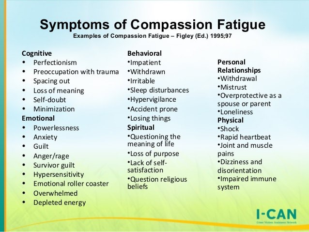 Common symptoms of compassion fatigue include: