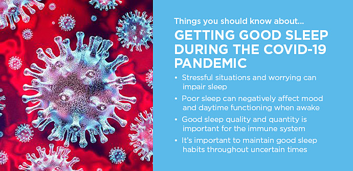 “Is the coronavirus situation keeping you up at night? Learn why sleep is important and get specific tips for improving your sleep during the pandemic”.