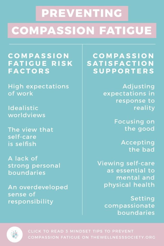 “Proactively performing self-care is a first-line attack against the exhaustion that stems from compassion fatigue. In addition to taking time away from work for yourself, get plenty of rest, eat a healthy diet, and exercise” (even if just for a few minutes on your break).