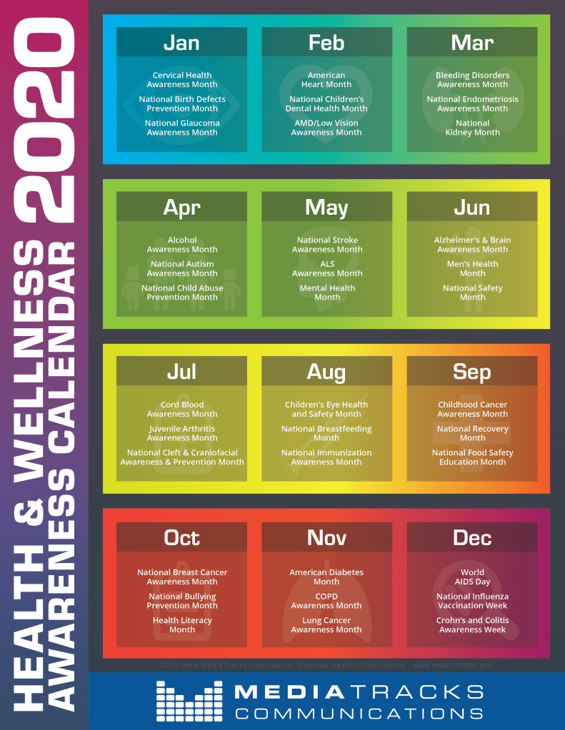 3.4 Mental Health Calendar 2020 – Dates For Your Diary “Calendar of national health and wellbeing campaigns table for 2020 to 2021 … Mental Health Awareness Week is all about raising awareness and … National Cholesterol Month is devoted to raising funds for Heart UK.”