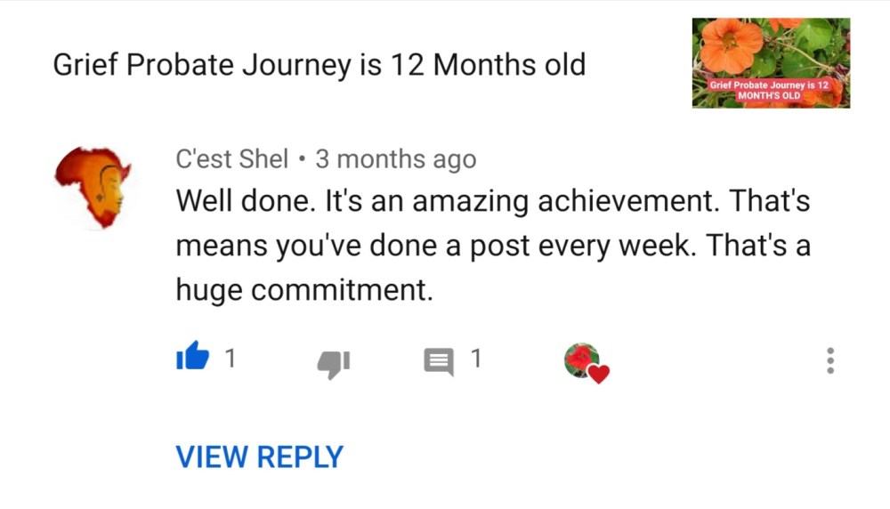 One thought on “Grief Probate Journey YouTube channel is 6 months old”