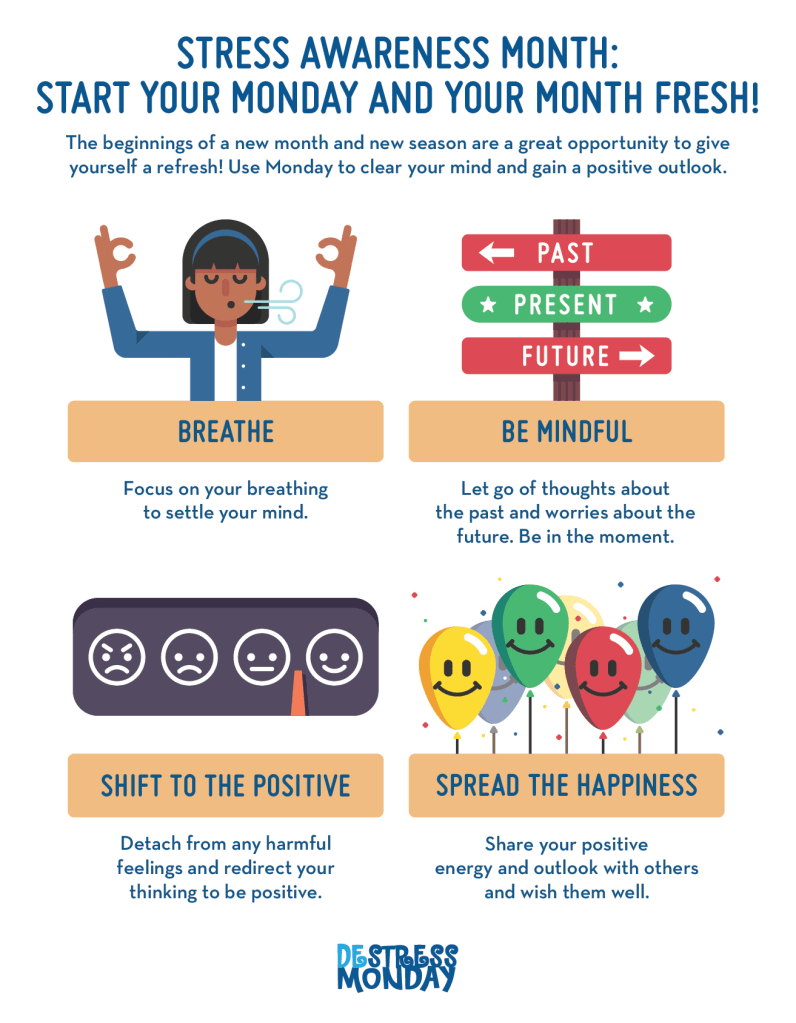 “Stress Awareness Month has been held every April, since 1992 to increase public awareness about both the causes and cures for our modern stress epidemic”.