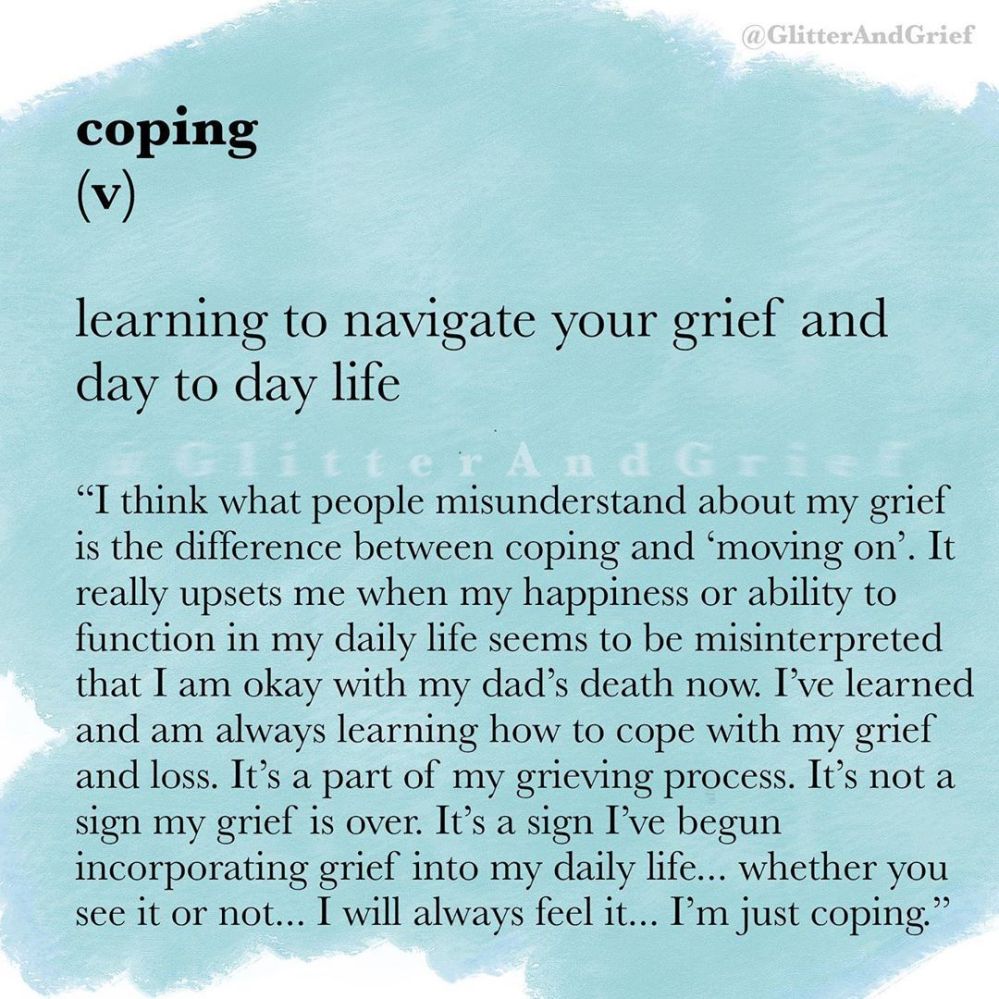 Grief is almost like a rediscovery of life and yourself as a person, we say this as from our experience, the loss of our Dad has had a huge impact on our lives, and we are not the same. We will never be the same, we are still trying to work out and discover who we are.