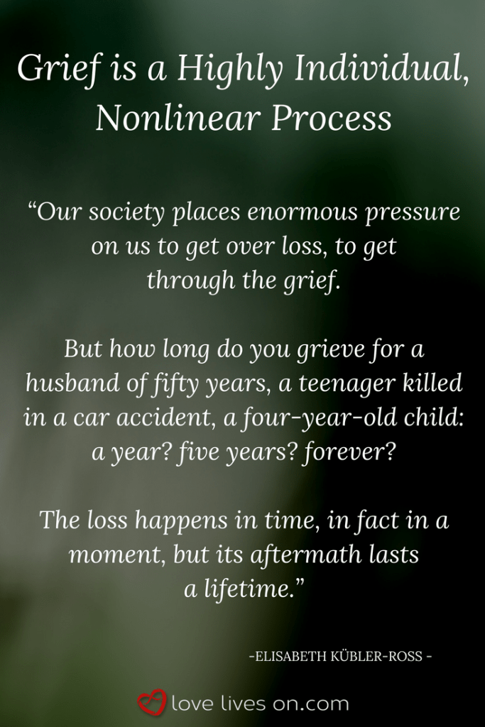 “A common misconception about grief is that there is a linear timeline that one must pass through in order to come to terms with the death of a loved one. Generally, pain is tempered as time passes, but there is no timeline with grief”.