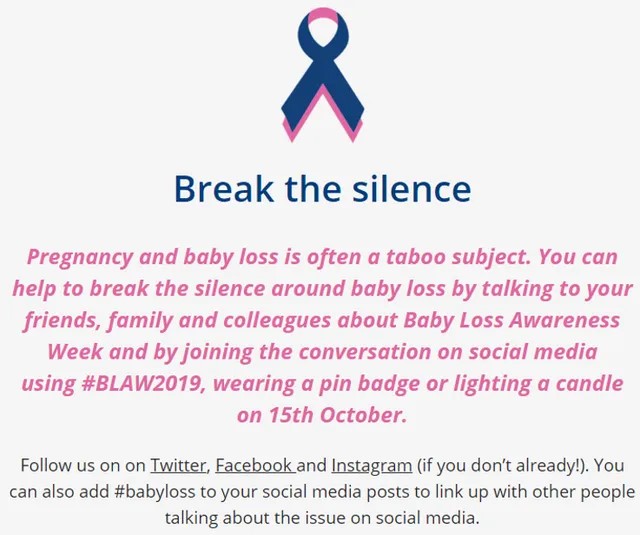 October 15 is a national remembrance day for miscarriage and pregnancy loss and October is National Pregnancy and Infant Loss Awareness Month”.