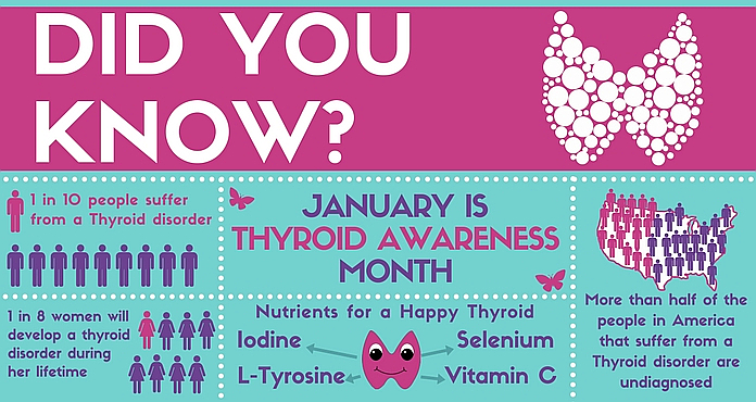 “January is National Thyroid Awareness Month. The thyroid is a small, butterfly-shaped gland located at the base of the neck”.