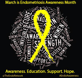 “March is Endometriosis Awareness Month. Endometriosis is an inflammatory condition where endometrial tissue (tissue similar to the lining of the uterus) grows outside of the uterus”.