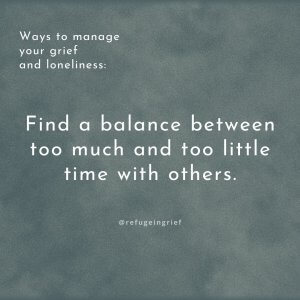 “Loneliness is a natural part of grief and it is one of the more trying aspects of accepting a loss. When a loved one dies, a hole is left that no one and nothing else can fill. It is as if no one else can know or understand. The intense and mixed feelings of grief can lead to separation and isolation from others”.