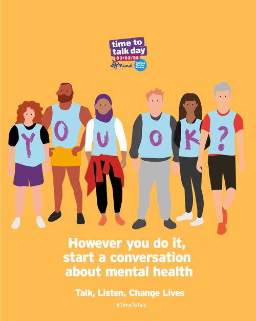 “It’s Time to Talk Day on Thursday 2 February 2023! Run by Mind and Rethink Mental Illness, Time to Talk Day is the nation’s biggest mental health”..